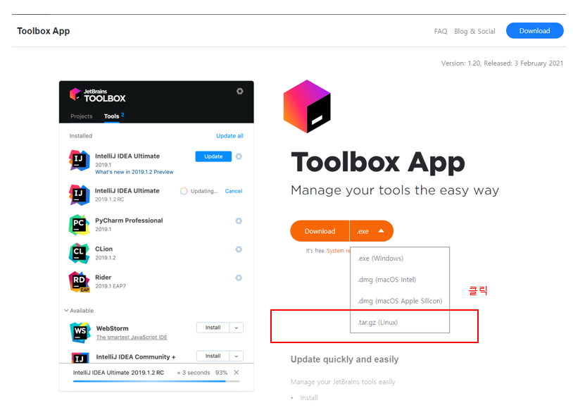 Toolbox App을 이용하여 IntelliJ 설치하기