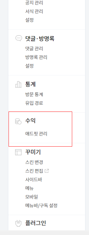 전날 티스토리 관리 페이지를 둘러보다 그동안 보지 못했던 '수익'메뉴 확인!