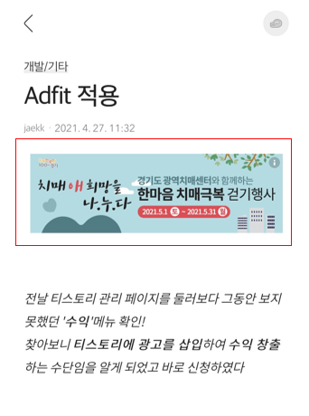 찾아보니 티스토리에 광고를 삽입하여 수익 창출하는 수단임을 알게 되었고 바로 신청하였다