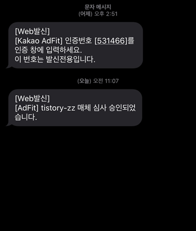** adfit 신청 시 SMS 수신 알람을 선택해야 진행사항 수신이 가능하다